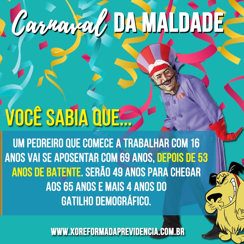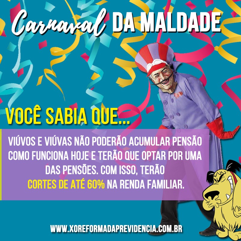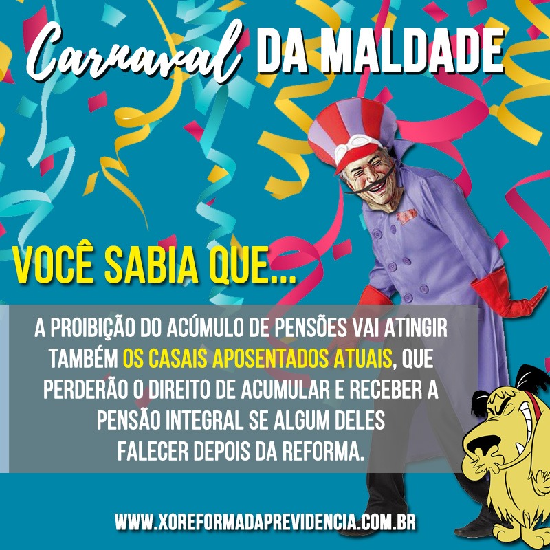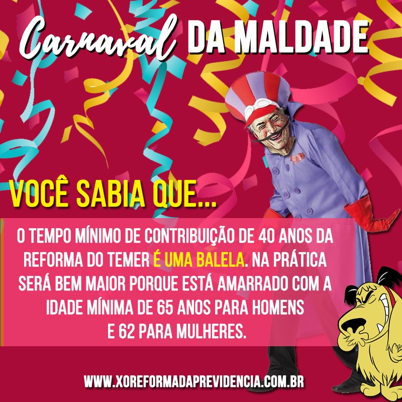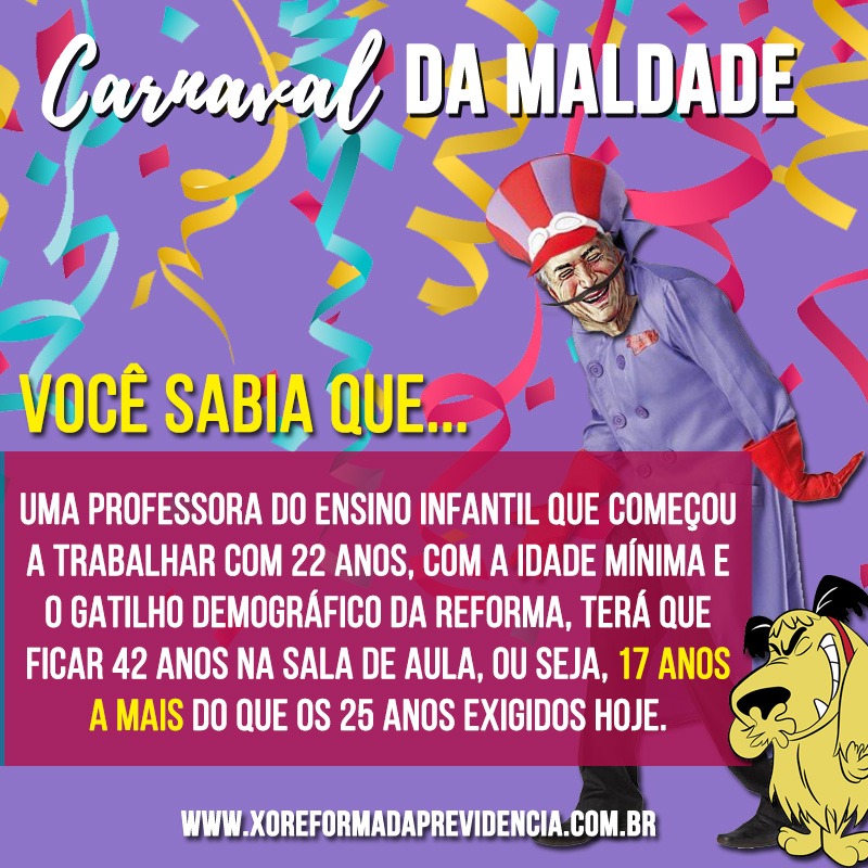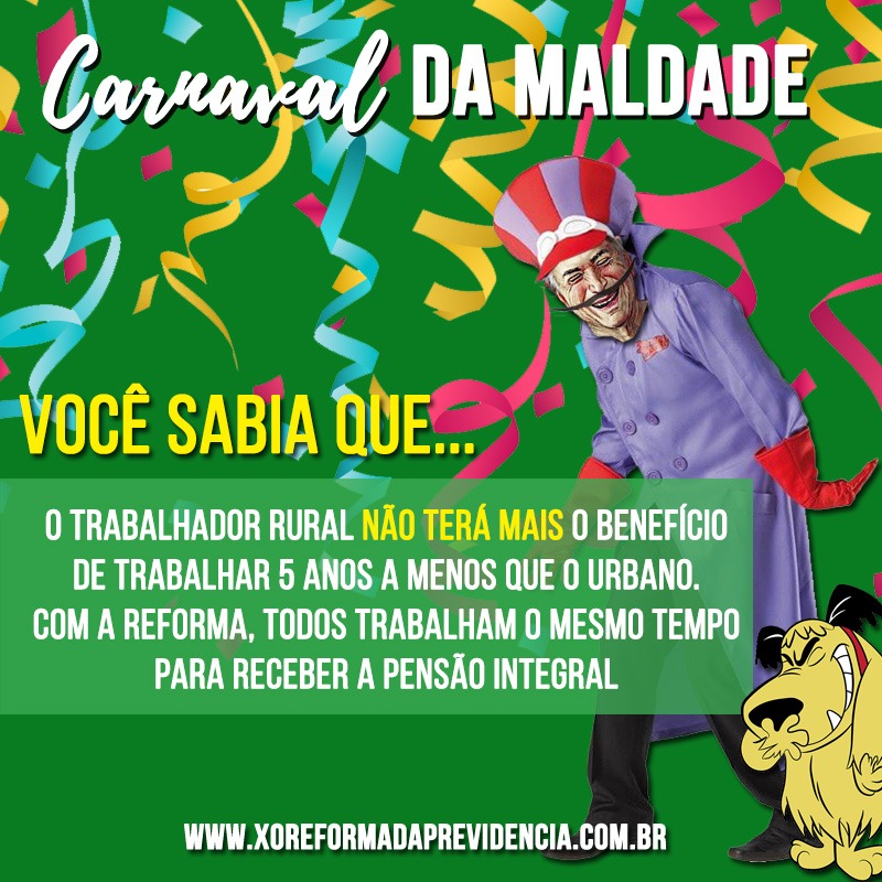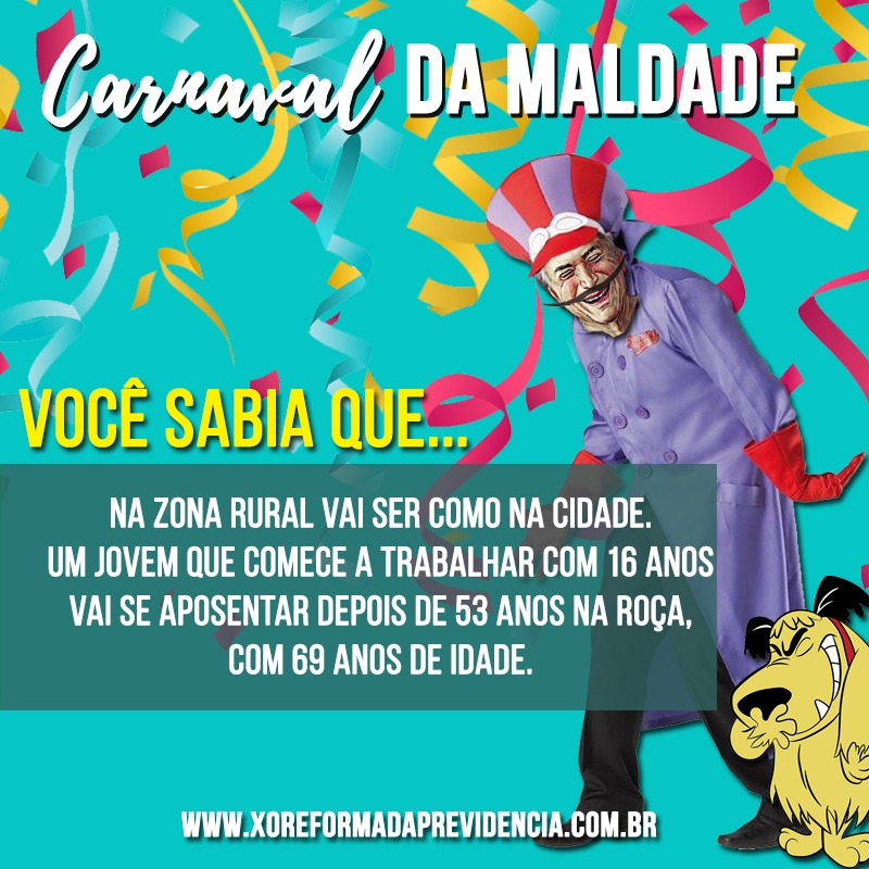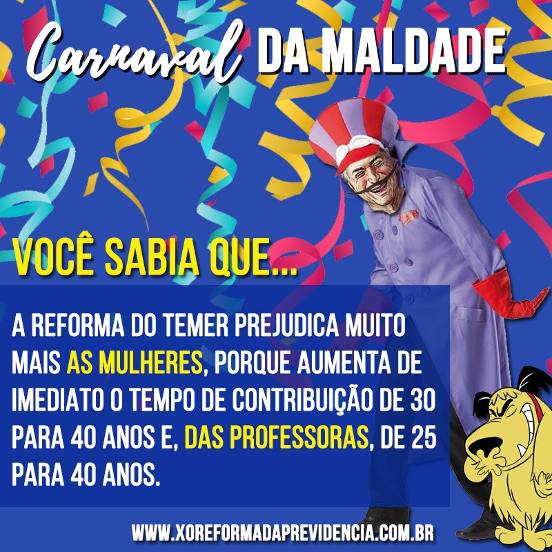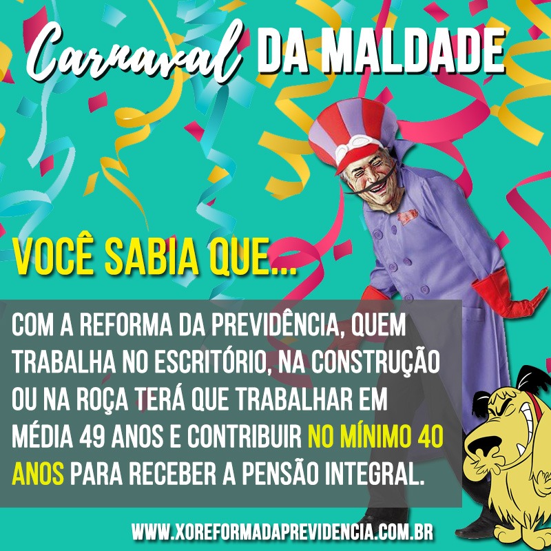 Com a chamada “Carnaval da Maldade”, o material dá exemplos de como o texto da reforma vai mexer com a vida d@s brasileir@s.