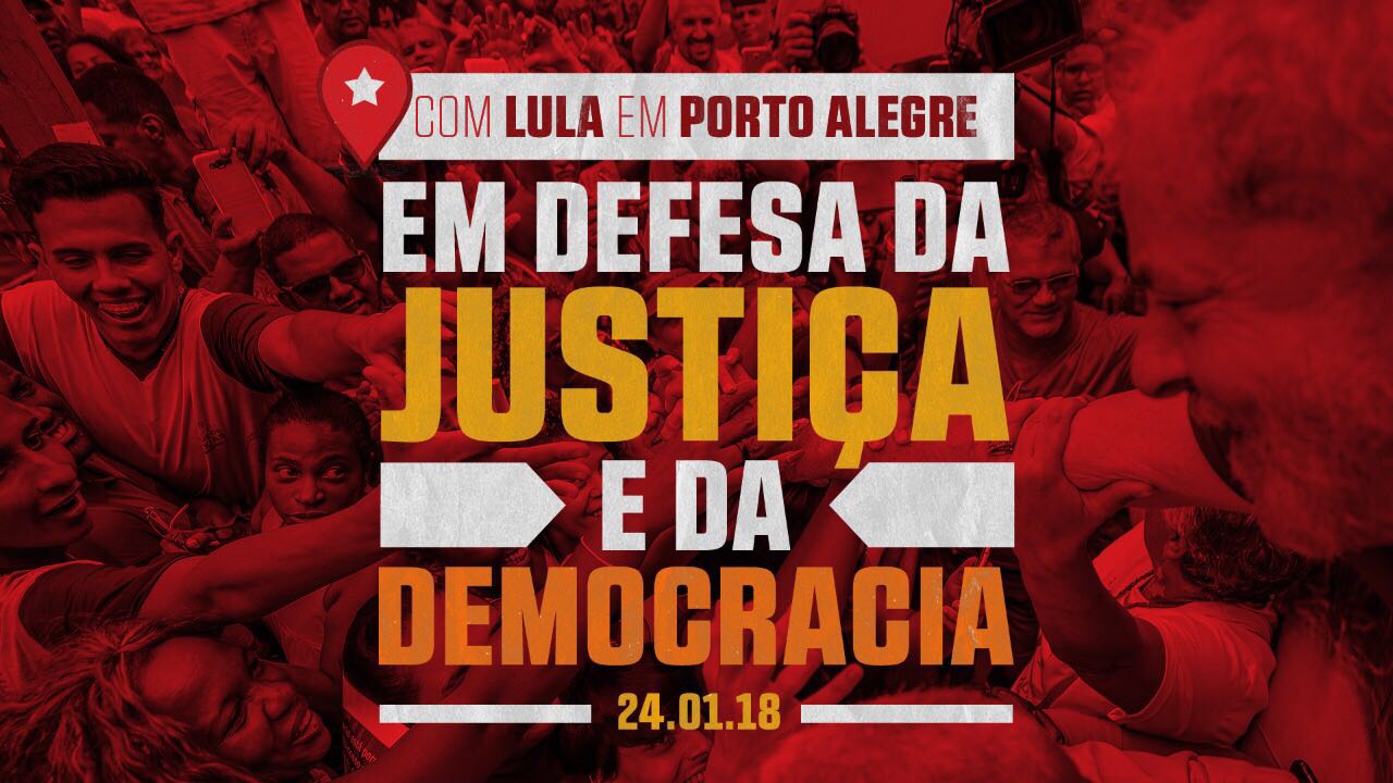 Porto Alegre receberá brasileiras e brasileiros de todo o País no próximo dia 24 de janeiro, quando o ex-presidente Luiz Inácio Lula da Silva será julgado pelo Tribunal Regional Federal da 4ª Região, na capital do Rio Grande do Sul. Para ajudar na divulgação dos atos em solidariedade, movimentos sociais produziram artes para serem divulgadas na internet e utilizadas em adesivos e camisetas.