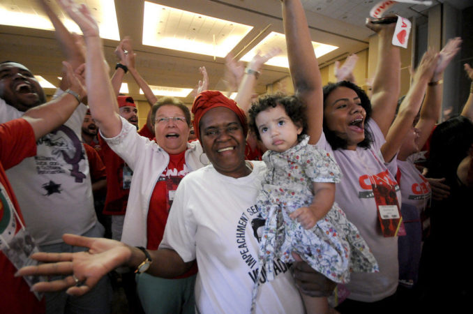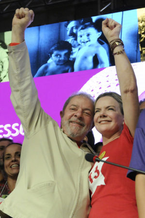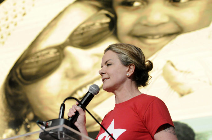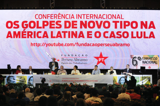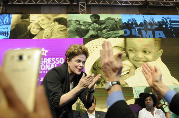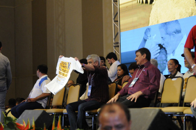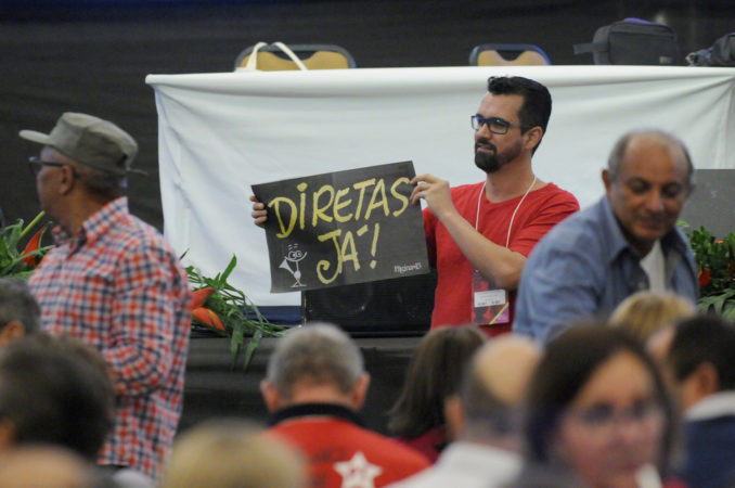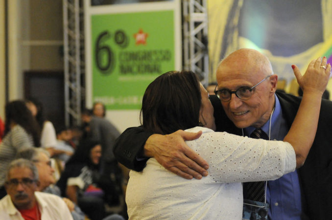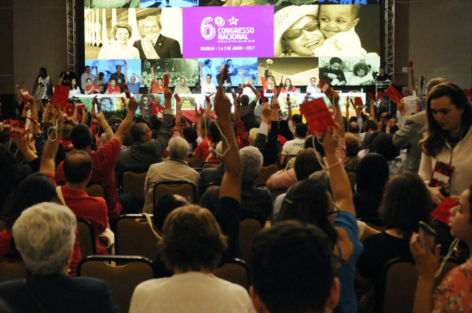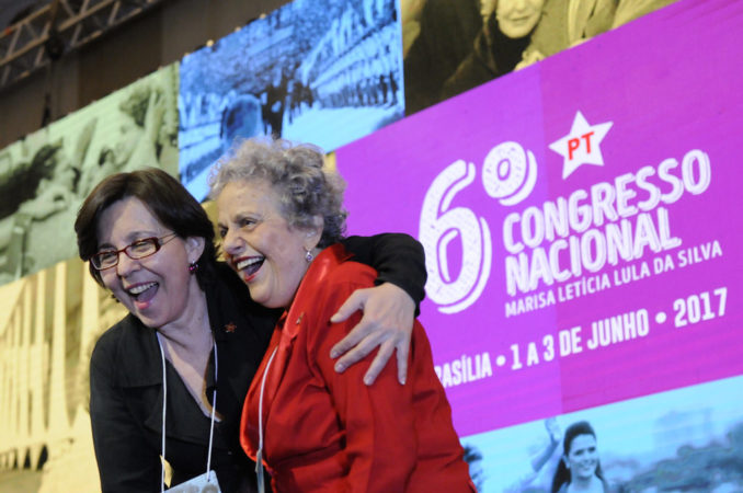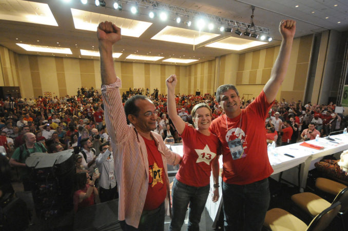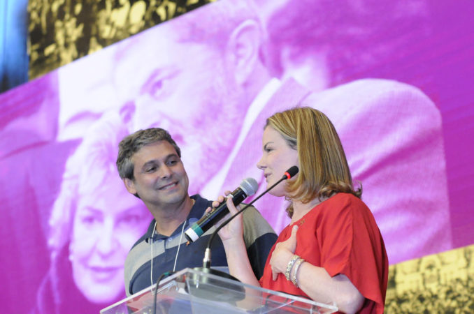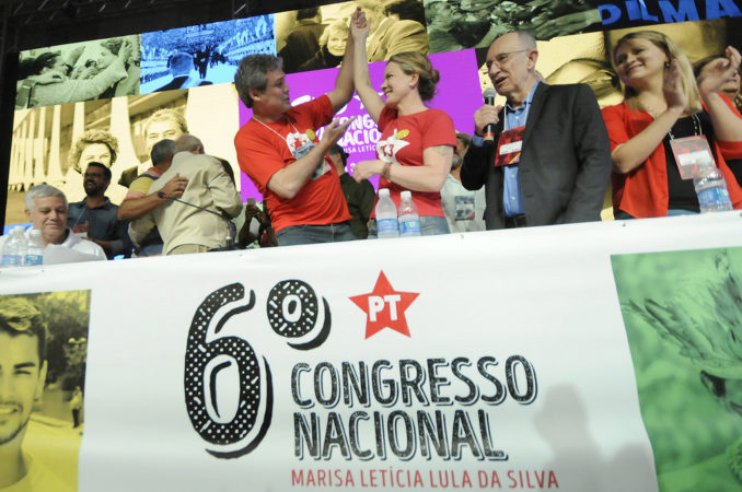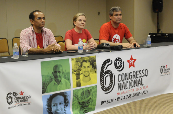 Brasília, 3 de junho de 2017 - José de Oliveira, Lindbergh Farias e Gleisi Hoffmann após as apresentações das candidaturas para o PT Nacional. Foto: Alessandro Dantas