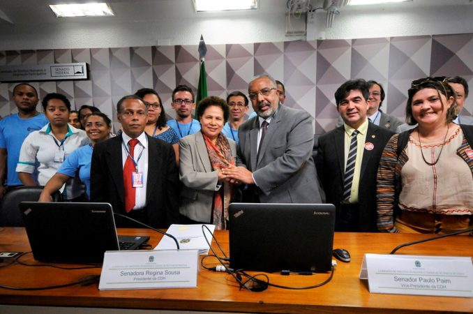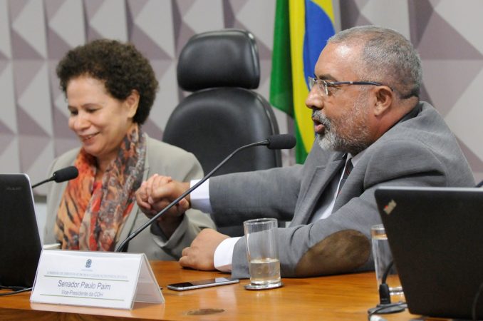Com senador Paulo Paim, senadora Regina Sousa toma posse na Comissão de Direitos Humanos. Foto: Alessandro Dantas