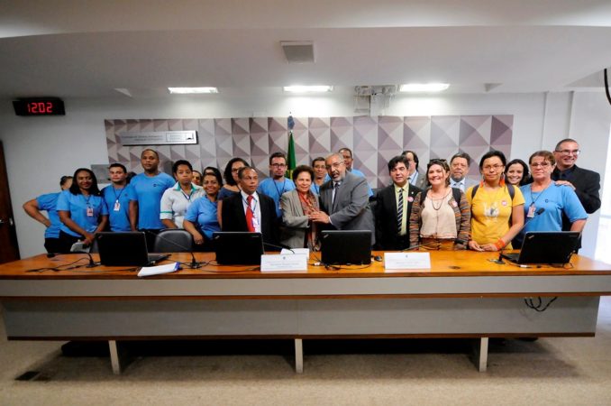 Senadora Regina e senador Paim, presidenta e vice da Comissão de Direitos Humanos, lideranças e funcionários, na sala da CDH, no Senado Federal. Foto: Alessandro Dantas