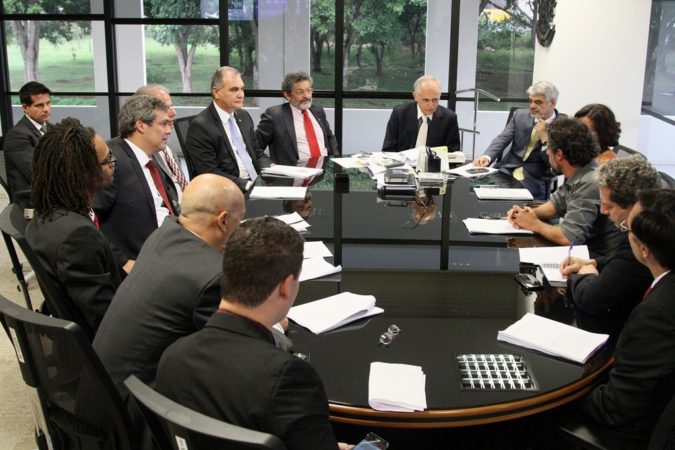 Senadores em reunião no TCU, questionando venda de patrimônio da Petrobras. Foto: Carlos Alberto