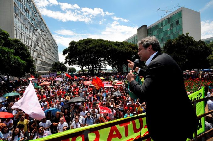 Senador Lindbergh Farias em manifestação da Greve Geral, em Brásilia, dia 15 de março. Foto: Alessandro Dantas
