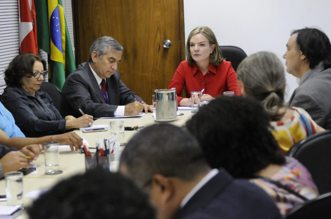 Senadora Gleisi Hoffmann e Gilberto Carvalho em reunião com representantes dos movimentos populares