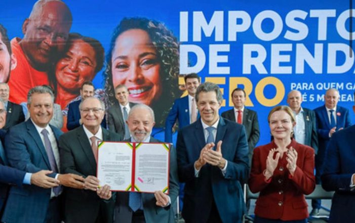 “Hoje comemoramos a isenção de imposto de renda até 5 mil reais. E quando vejo que participação nos lucros paga imposto, enquanto dividendos e bônus bilionários não pagam, penso: isso é justo? Não é”, acrescentou.